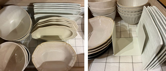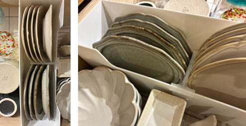 お皿を重ねて収納すると、下のお皿を取り出す時に上のお皿を持ち上げる必要がありますが、立てて収納することでどちらのお皿もさっと取り出せるようになりました。
