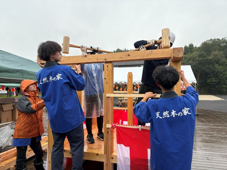 会場では、お子様が大工さん体験をすることのできる「上棟体験」や「かんながけ体験」、「丸太切り体験」を開催しました。