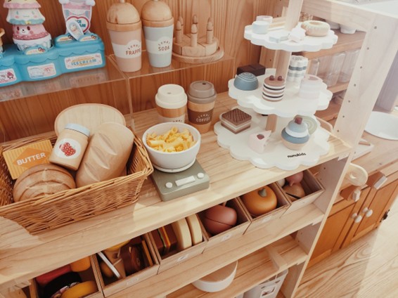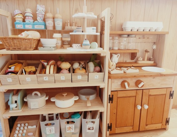 左側が収納棚、右側はおままごとキッチンです。