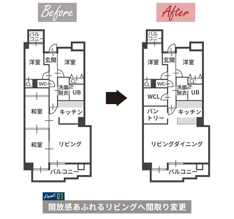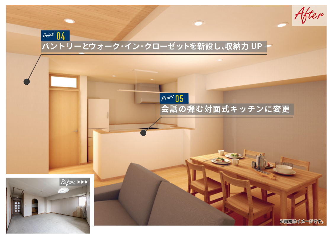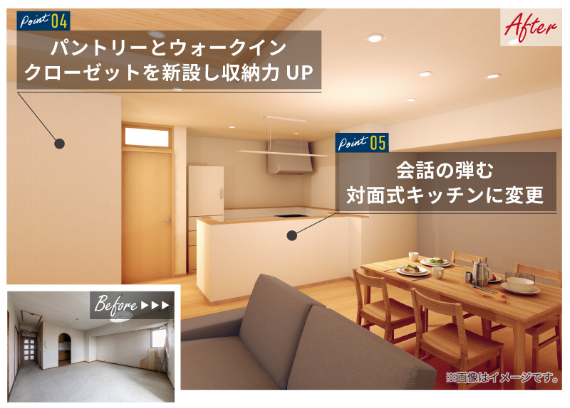 さらにパントリーとWIC(ウォークインクローゼット)を新設し、現代の暮らしに最適な収納力も兼ね備えた、こだわりのリノベーション物件が完成しました。