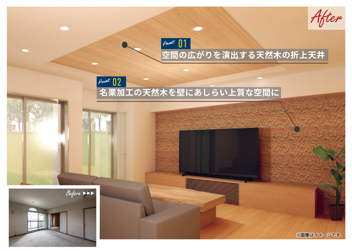 天然木の温もり宿る癒しの住まいを実現したマンションリノベーション【ご予約優先の 完成見学会を開催します!
