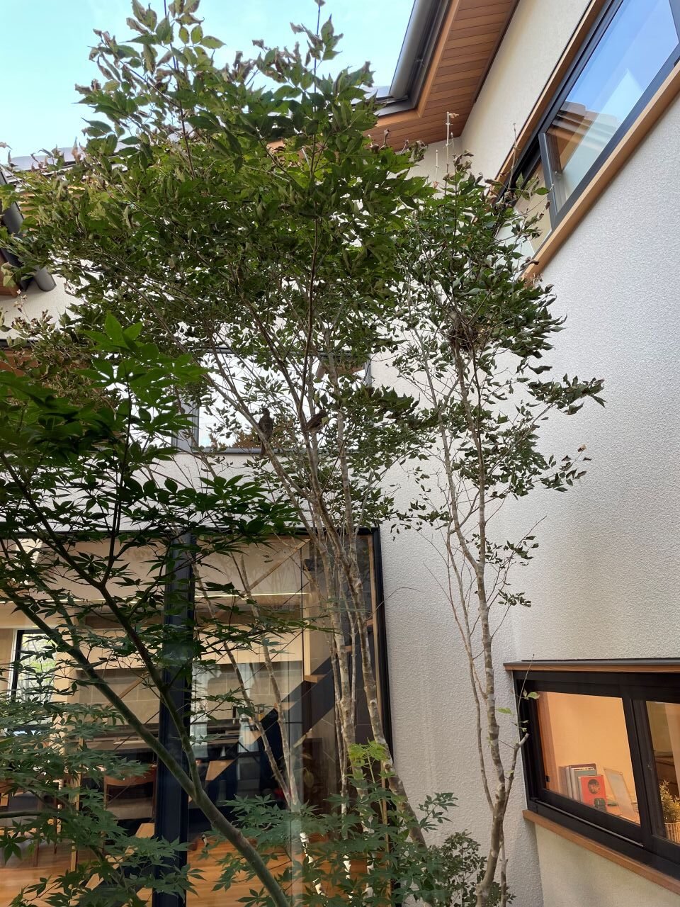 中庭の一角に、鳥が巣作りを始めたのです。