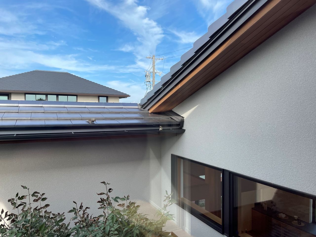 展示場の中庭に鳥がやってきました🕊️